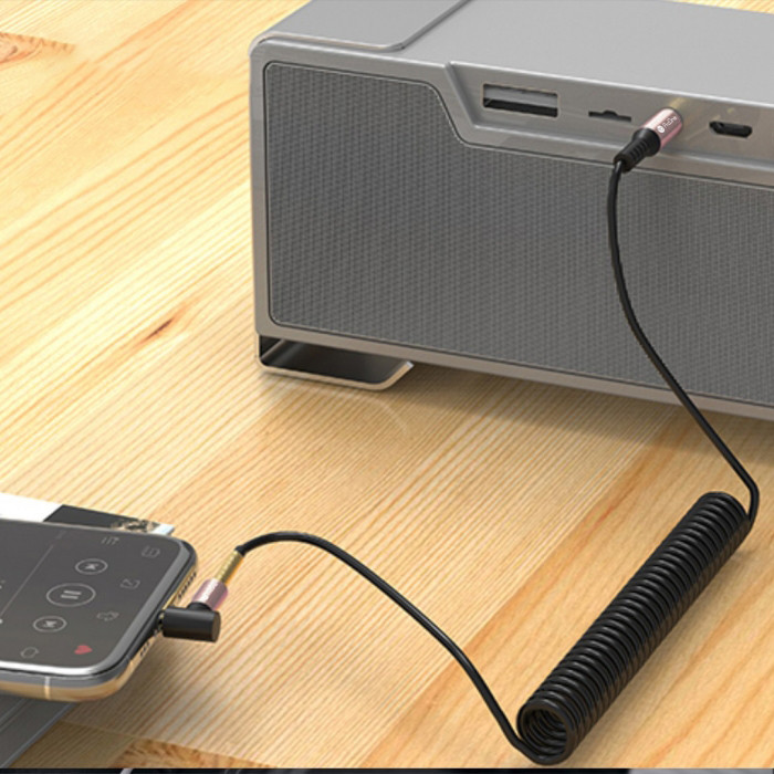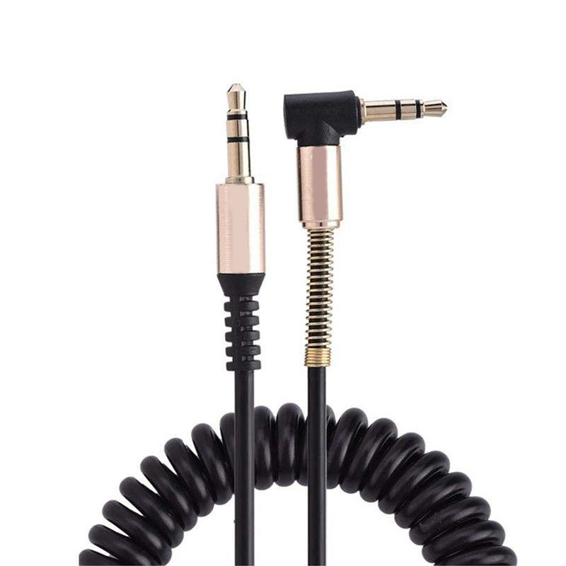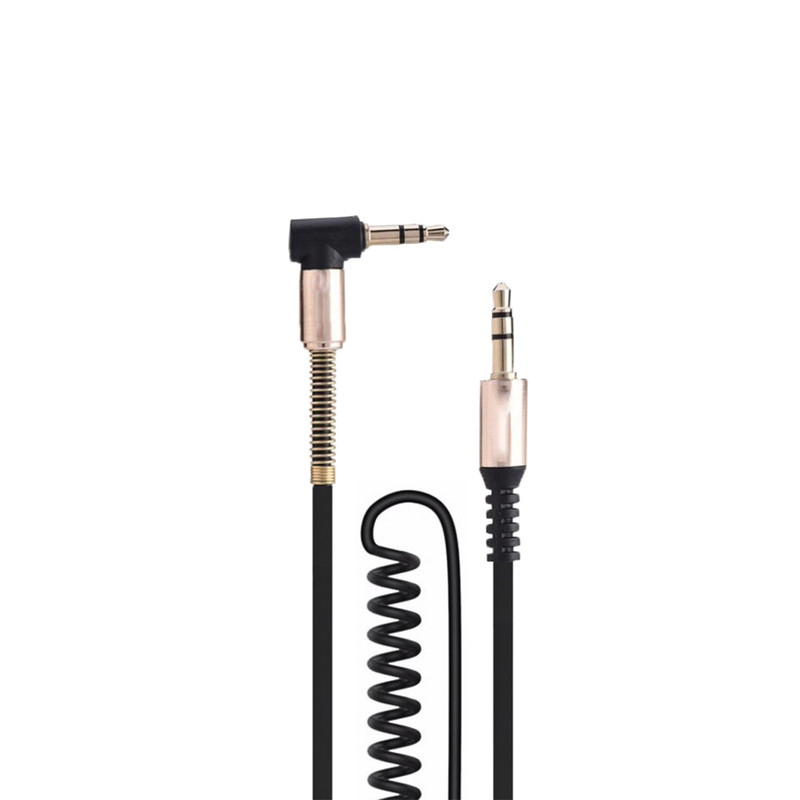 کانکتور جک 3٫5 میلی متری صدا، طراحی یک سر کانکتور به شکل L و تعبیه فنر فلزی برای جلوگیری از آسیب دیدگی و پارگی قسمت کانکتور طراحی فنری کابل برای مقاومت و انعطاف پذیری بیشتر و راحتی در استفاده و طول 180 سانتی متر مناسب برای اتصال و استفاده برای ضبط ماشین، اسپیکر، هدست، تلفن همراه و… کانکتور از جنس آلیاژ آلومینیوم و روکش کابل PVC مقاوم در برابر پارگی و کشیدگی