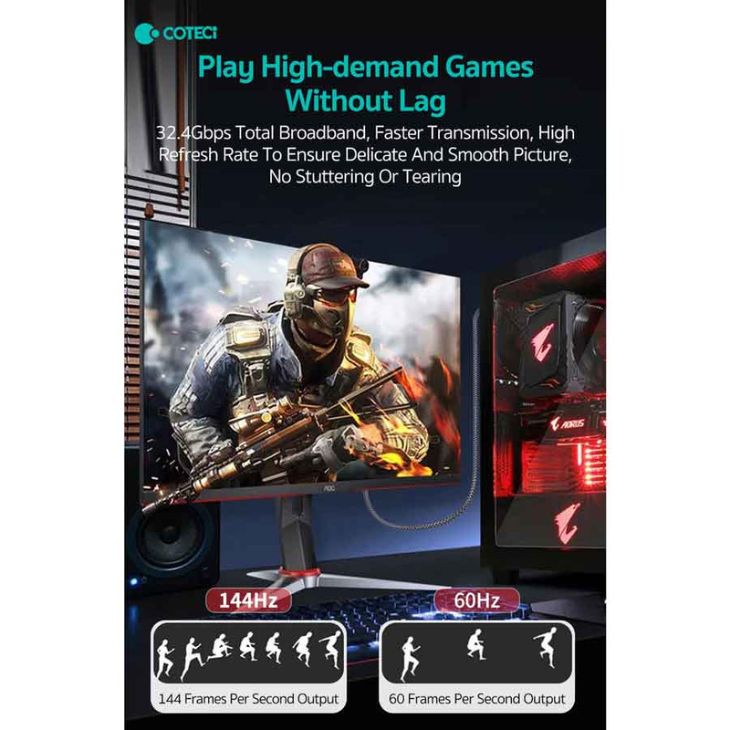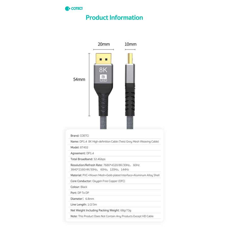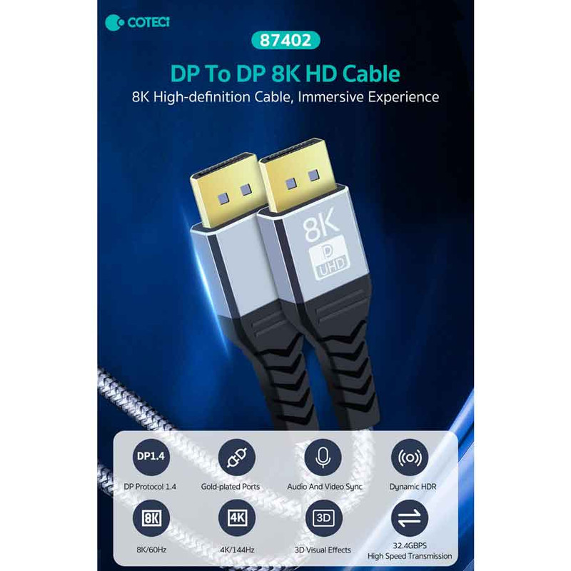 پشتیبانی از استاندارد DisplayPort 1.4 – انتقال تصاویر 8K/60Hz و 4K/144Hz با کیفیت بالا – اتصال امن و مطمئن – انتقال همزمان صدا و تصویر – سازگاری با طیف گسترده ای از دستگاه ها – طراحی ارگونومیک برای اتصال آسان – اتصالی پایدارتر – تصاویری با کیفیت 8K – سرعت انتقال بالا – نرخ تازه سازی بالا – صویری ظریف و روان – سوکت های طلاکاری شده ضد اکسیداسیون – مقاوم در برابر خرابی سوکت – رنگ: مشکی – طول کابل: 2 متر – توافق: DP1.4 – پهنای باند کل: 32.4Gbps – وضوح/نرخ تازه سازی: 76804320/8K/30Hz、60Hz 38402160/4K/30Hz、60Hz、120Hz、144Hz – هادی هسته سیم: مس عاری از اکسیژن (OFC) – پورت: DP به DP