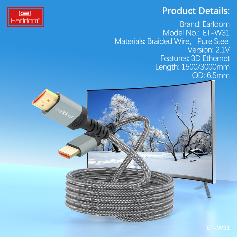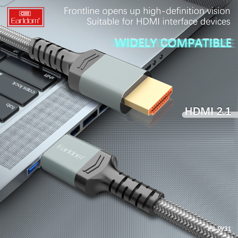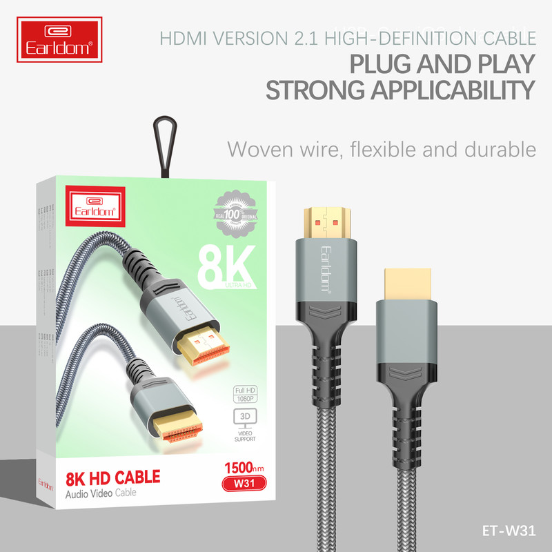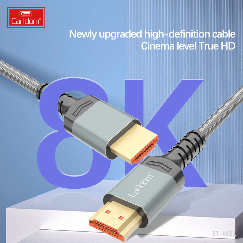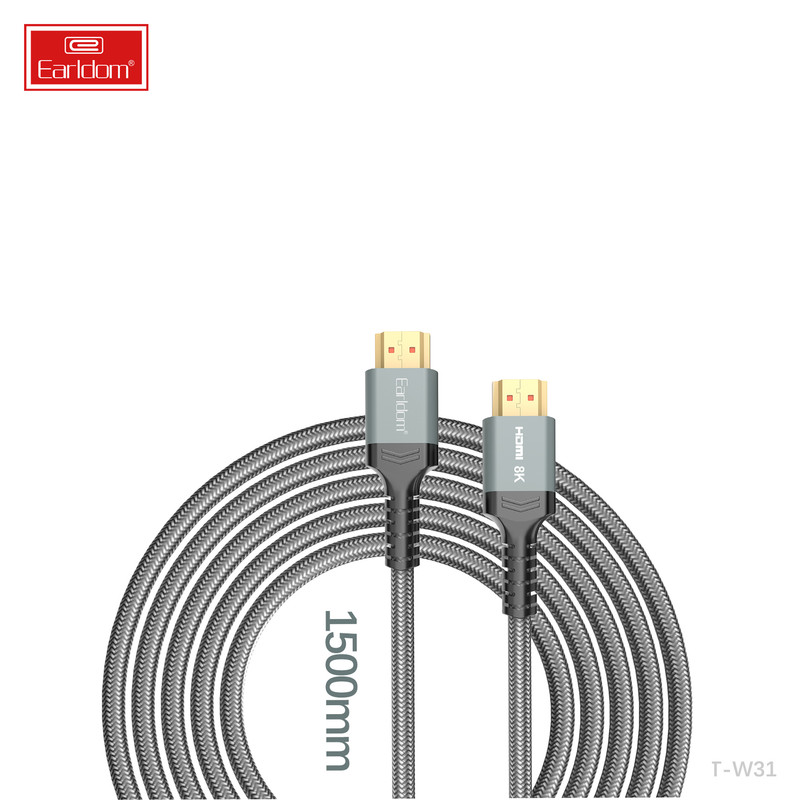 کابل HDMI ورژن 2.1 طول 1.5 متر با ساپورت رزولوشن 8K با سرعت 48 گیگابت بر ثانیه و ضخامت 6.5 میلی متر و محافظت شده با فلز و PVC بافته شده
