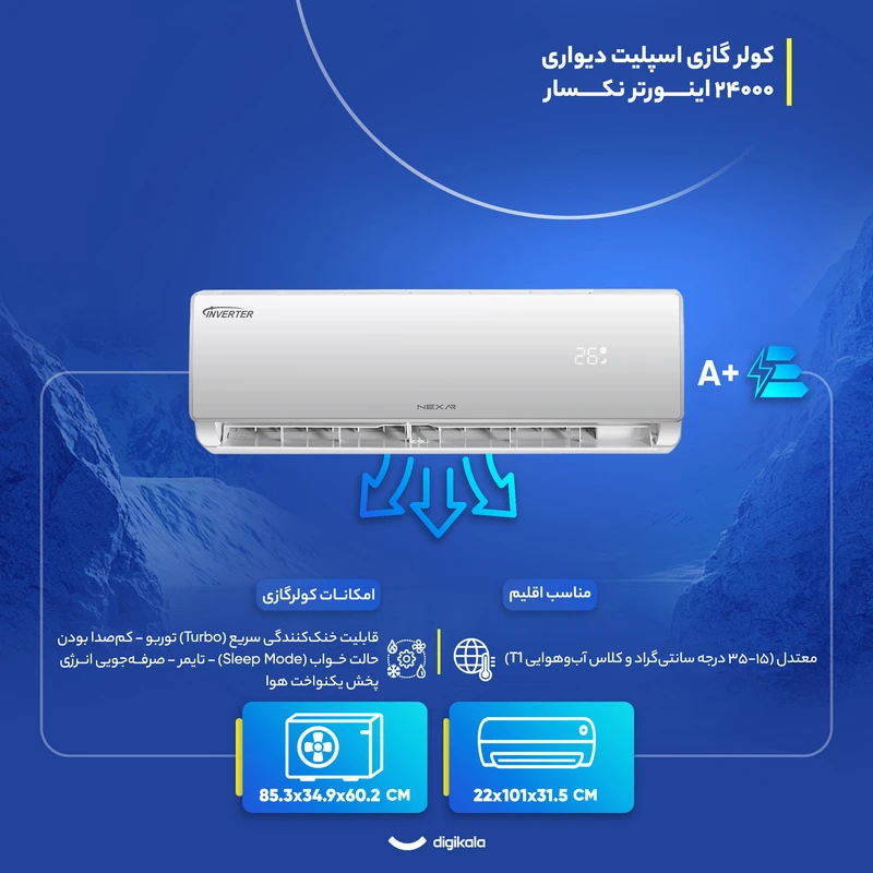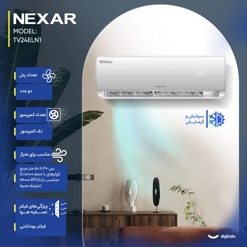 در انتخاب لوازم خانگی، یافتن یک دستگاه تهویۀ مطبوع که هم قدرت مناسب و هم مصرف انرژی کمی داشته باشد، اهمیت زیادی دارد. کولر گازی اینورتر نکسار ۲۴ هزار مدل NAC-TV24EL1 با ارائۀ عملکرد ترکیبی سرمایشی و گرمایشی و بهره‌مندی از فناوری‌های نوین، انتخابی ایده‌آل برای هر خانه‌ای است. این دستگاه با طراحی زیبا و ویژگی‌های کاربردی، آسایش را در تمام فصول سال برای شما به ارمغان می‌آورد.