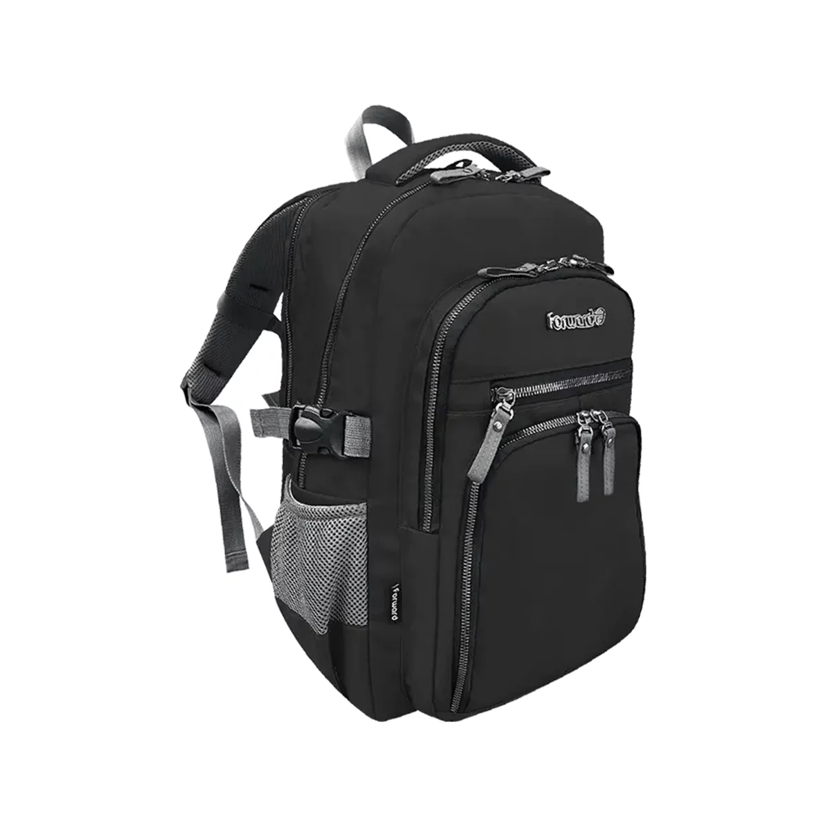 ضد آب و قابل شست و شو، محفظه با پد فشرده برای جلوگیری از ضربه به لپتاپ، یک جیب زیپی در جلو قسمت بالایی، یک جیب زیپی در قسمت پایین کوله، یک جیب زیی در قسمت جلویی، یک عدد کیف کوچک مجزا قابل استفاده به عنوان کیف لوازم آرایش، دو جیب توری در دو طرف کوله، پد تهویه هوا در سرتاسر قسمت پشتی کوله