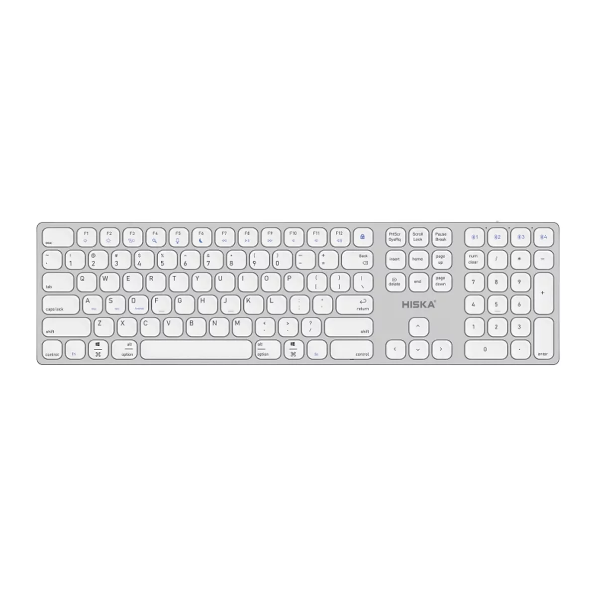 طراحی آلومینیومی بسیار باریک 6.6 میلی متری – کلیدهای بی صدا – اتصال بی سیم قابل اعتماد 2.4G و بلوتوث امکان اتصال بی سیم به چند دستگاه با برد عملیاتی تا 10 متر – باتری قابل شارژ داخلی – دارای کلید FN – باتری لیتیوم پلیمری قابل شارژ USB-C با ظرفیت 350 میلی آمپر ساعت – طراحی بسیار باریک با 104 کلید X Scissors و ساختار آلومینیومی – امکان جفت شدن با 3 یا 4 دستگاه و جابجایی روان بین آن ها از طریق بلوتوث