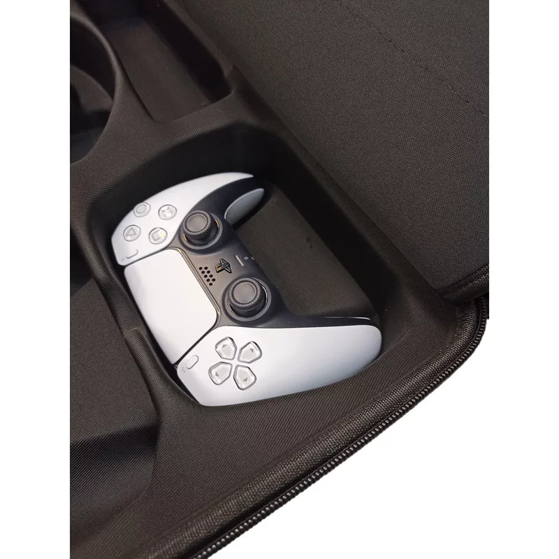 این کیف مسافرتی برای PS5 طراحی شده و ظرفیت بالایی دارد ، این کیف میتولند کنسول بازی PS5 به همراه دو عدد دسته بازی DualSense و هدفون Pulse 3D و پایه شارژ دسته ها و کابل برق و HDMI به همراه هشت عدد دیسک بازی را در خود جای دهد.