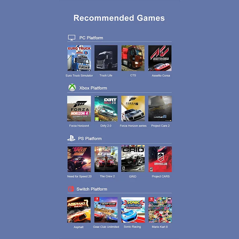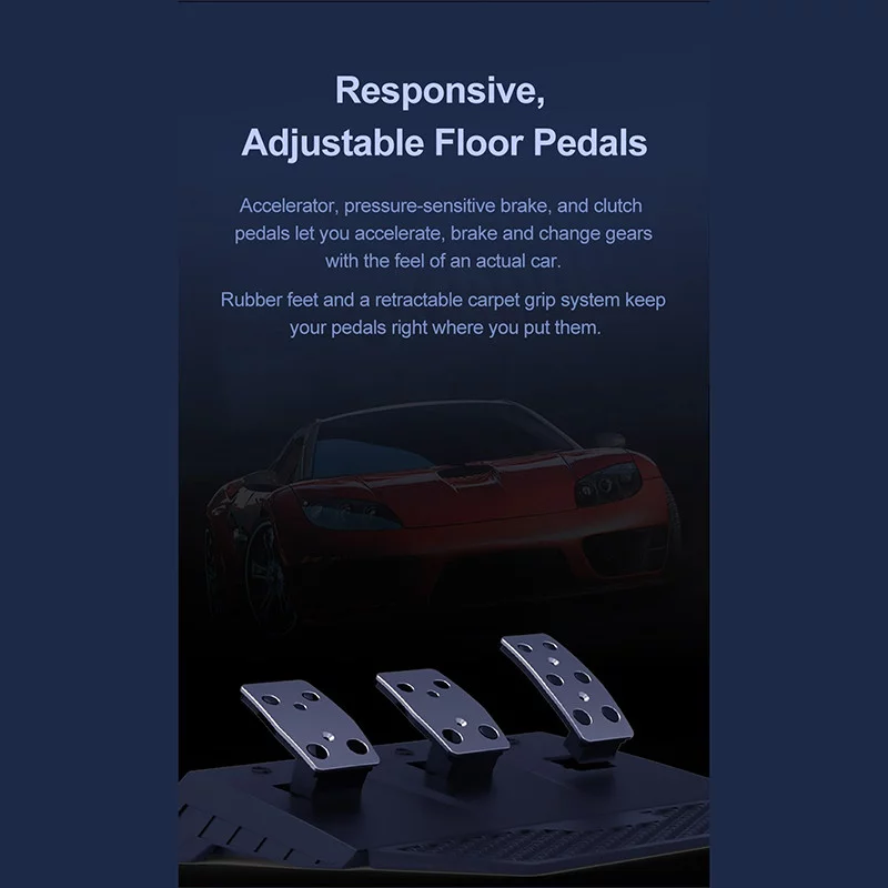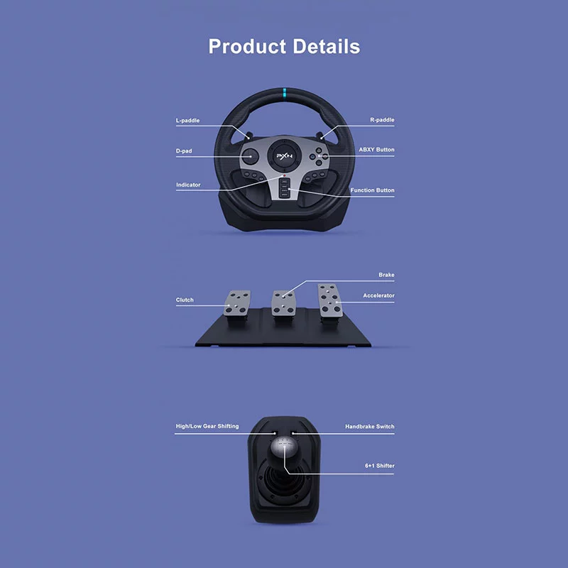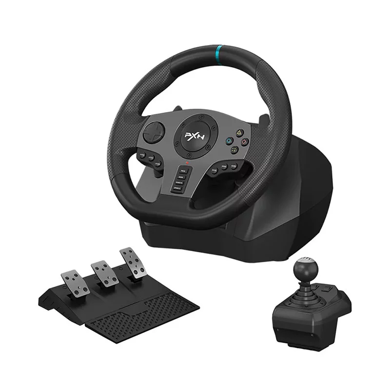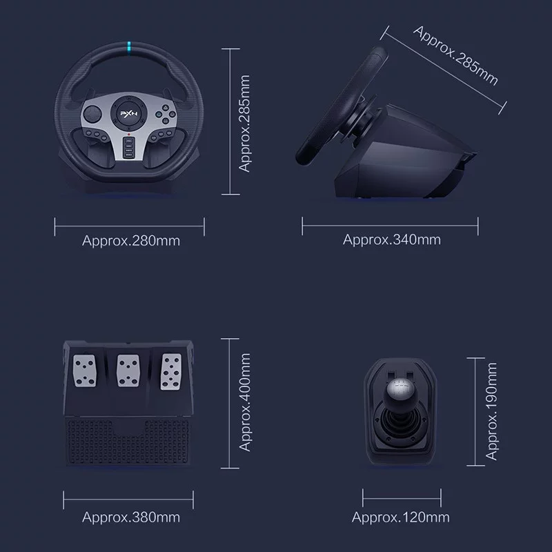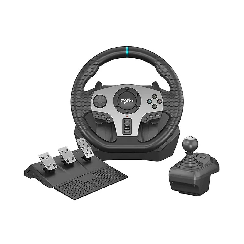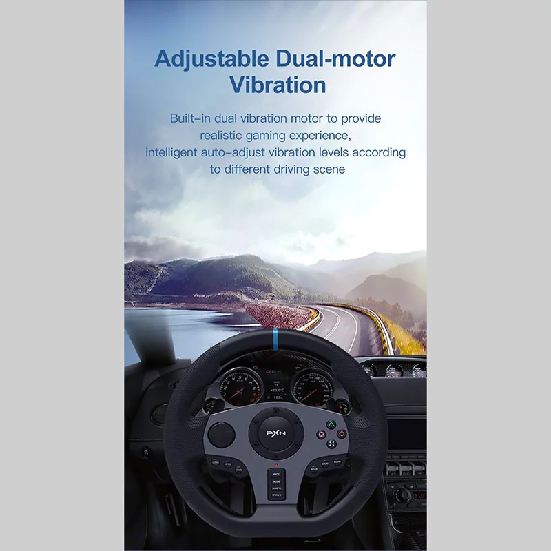 وزن: 55000 گرم ابعاد: 102 × 173 × 380 سانتیمتر سازنده: PXN مناسب برای: Xbox Series X, S، PS3، PS4، PC، Xbox One، سوییچ جنس بدنه: چرم و آلومینیوم نوع موتور: موتورهای ارتعاشی دوگانه واقعی با 7 مکنده قوی و قاب ثابت کننده جعبه دنده: اهرم دنده در پشت فرمان – جعبه دنده به صورت جداگانه فروخته میشود قابلیت نصب: نصب روی میز به وسیله پیچ و مهره چرخش فرمان: 270/900 درجه نوع: فرمان بازی کاربردها: بازیهای ریسینگ