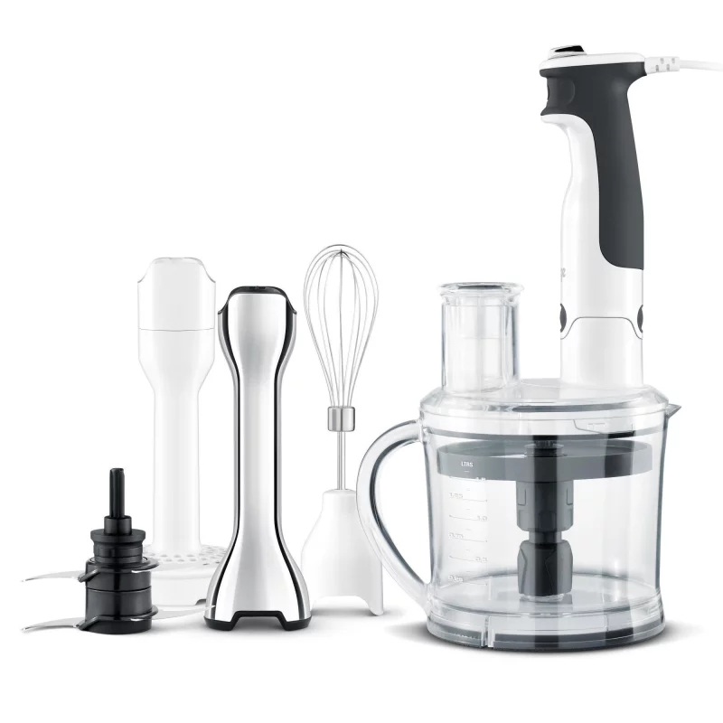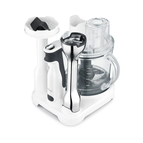 موتور با 15 دور متغیر و قابل تنظیم/دارای پایه پوره کن/رنده حلقه ای با درجات قابل تنظیم از اسلایس نازک تا ضخیم قابل تنظیم/رنده دیسکی تماما استیل دو طرفه (رنده ریز و درشت)/پره همزن نرم/محفظه نگه دارنده لوازم/قطعات پلاستیکی عاری از مواد شیمیایی (BPA FREE)