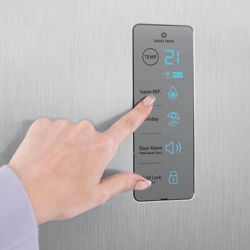این یخچال فریزر با تمرکز بر زیبایی و مینیمالیسم طراحی شده است. ظاهر بدون قاب آن جلوهای صاف و یکدست به دستگاه بخشیده که در هماهنگی کامل با دکوراسیون مدرن آشپزخانههاست. دستگیرههای مخفی این محصول باعث میشود تا هیچگونه اختلالی در سطح ظاهری ایجاد نشود و خطوط طراحی دستگاه همواره منظم و شیک بماند.